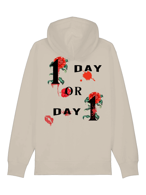 Dieser Hoodie kombiniert starkes Design mit hochwertiger Verarbeitung. Der markante Rückendruck und das klare Statement,"1 Day or Day 1" sorgen für einen auffälligen Look und unterstreichen deinen individuellen Style.